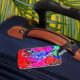 Un diseño artístico abstracto de bayas y hojas en colores vivos.