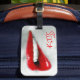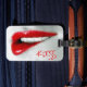 Esta etiqueta de equipaje tiene la imagen de los labios y dice "besa" en ella.