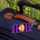 Etiqueta Para Maletas Beso amarillo labios rayas negras violetas etiquet