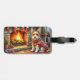 Etiqueta Para Maletas Biewer Terrier Chimenea con Luces de Navidad