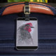 El tema de esta obra de arte creada en lápices de colores y carbón es una gallina Australorp negra. Esta raza de pollo de ojos brillantes se originó en Australia.
