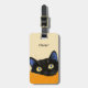 Playful illustration of a black cat with bright yellow eyes peeking over an orange blanket. The curious expression and vivid colors create a fun and eye-catching design, perfect for a luggage tag that adds personality and charm to any traveler’s bag.