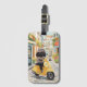 Etiqueta Para Maletas Black Doodle Riding Scooter European City Streets
