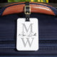 Create Your Own Stylish Modern Custom World Traveler Vertical Monogram Name Luggage Tag. This clean and modern luggage tag brings a personalized touch to any trip, perfect for anyone who loves to travel with style. The front features a soft gray two-letter serif monogram using the first and last initials, stacked vertically with your full name in black handwritten script centered between them. The white background keeps the look fresh, minimal, and versatile for both men and women.