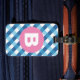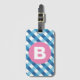 Etiqueta Para Maletas Blue and White Plaid Checked Pink Monogram