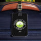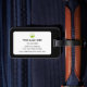 ¡LOS VERDES SON BUENOS PARA TI! Viaja con estilo con esta etiqueta para equipaje de golf de doble cara que presenta texto blanco curvo que rodea una bandera roja en verdes de golf estilizados, todo sobre un fondo negro sólido. La parte delantera incluye espacio para tres iniciales monogramadas en blanco, mientras que la parte trasera refleja el diseño y ofrece campos editables para tu nombre, teléfono, dirección y correo electrónico, acentuados con una bandera de golf coincidente sobre la información de contacto.
