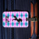 Etiqueta de equipaje personalizado de raza negra para la cría de caballos - diseño abstracto de color rosa y azul acuático para el fondo. Hermoso caballo negro criando encima del nombre personalizado de su elección!