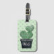 Etiqueta de maleta monogramada dulce con arte de cactus acuarela.