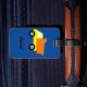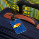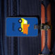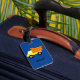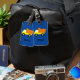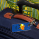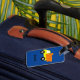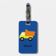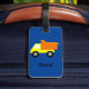Camión de juguete al estilo personalizado. Etiquetas de equipaje del personalizado. Fondo azul. Edite el nombre para hacer que estas etiquetas de equipaje sean personalizadas. Una idea de regalo para los niños.