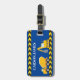 Etiqueta de equipaje del vehículo de construcción del personalizado de Guay para un niño que ama los vehículos de construcción amarillos en azul y amarillo. Un regalo divertido para un niño que ama los autos y camiones. Personalizar con el nombre de su hijo bajo la cinta de precaución negra y amarilla. Cuenta con un mezclador de hormigón y un excavador con una parte posterior.
