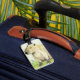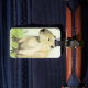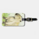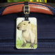 Un cuadro acuarela de un capibara sentado entre flores azules en primavera adorna esta etiqueta de equipaje de personalizable.