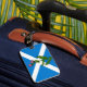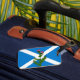 Símbolo floral de Escocia en modelo patriótico de la bandera escocesa