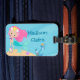 La marca de equipaje de la sirena personalizado, que cuenta con un adorable chica de pelo rosado con una cola verde azulada fresca, nadando junto a hermosas conchas en el océano. Regalo de cumpleaños de Guay para un fiesta de piscina o un chica de playa.