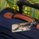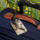 Etiqueta Para Maletas Chipmunk en una pila de madera