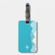Una etiqueta de equipaje azul turquesa y blanco brillante y vibrante, que te ayudará a ti y, sobre todo, a otros a identificar tu equipaje único en el carrusel. En el reverso, usted tiene un área para añadir su información de identificación específica en funda de la desafortunada situación de pérdida de su equipaje.