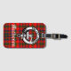 La etiqueta de equipaje de mano muestra el patrón de manteca escocesa Matheson rojo tartán con insignia de escudo de clan y sobreposición de texto de personalizable