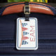 This monogrammed luggage tag features a nautical flag banner in soft watercolor shades of red, white and blue. Personalize the monogram with your choice of initials on the front and special text on the back.