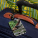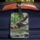 Esta etiqueta de equipaje se muestra con una foto impresa de un oso marrón salvaje en el Parque Nacional Yellowstone. Personalizar esta etiqueta o compra como está. Imagen de stock