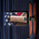 La Constitución de Estados Unidos rodó con un pergamino sobre una bandera norteamericana vintage