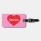 Esta etiqueta de identificación de equipaje incluye un solo corazón rojo y con forma sobrepuesto por una plantilla de texto personalizado en un lado y una plantilla de texto para su información de contacto en el otro. Hace un gran regalo de El día de San Valentín o luna de miel.