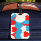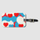 Gráficos de corazón de estilo retro en rojo, blanco y azul sobre etiquetas de equipaje.
