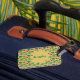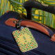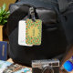 Un diseño verde dominante con corazones y patrones rojos llenaba los corazones. Este es un diseño lindo y llamativo que hará que el equipaje destaque en la correa transportadora. ¡Sólo personalizar con tu apellido y adégalo a tu maleta!