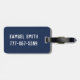 Colección de productos de color negro y azul muy clásico y masculino. Esta etiqueta de equipaje es personalizable con nombre y número de teléfono.
