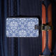 Etiqueta Para Maletas Damasco blanco y azul de guijarros