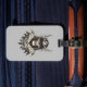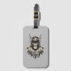 Calavera malvada con las manos, cuernos y rosas de esqueleto cruzados.
