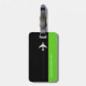 Un artículo elegante con la imagen gráfica de un plano blanco sobre fondo negro y verde, personalizado con su propio nombre e iniciales, para identificar sus pertenencias en su próximo viaje