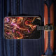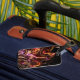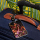 Esta etiqueta de equipaje tiene un diseño artístico.