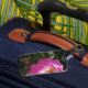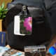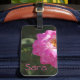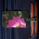 Nunca pierda su equipaje con esta etiqueta de equipaje fácil de ver que muestra una imagen de una flor rosa brillante sobre un fondo verde oscuro.