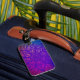 Este diseño presenta un patrón de mandala vibrante y simétrico con formas parecidas a hojas que irradian desde el centro. Las líneas audaces y los detalles intrincados crean una sensación de movimiento y energía. El degradado de color cambia de rosa y púrpura a naranjas cálidos y azules fríos, todo enmarcado en un fondo violeta rico. El conjunto es dinámico, llamativo y lleno de encanto artístico.