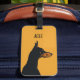 Esta etiqueta de equipaje muestra un ilustracion Doberman sobre fondo verde sólido con el texto predeterminado del personalizable "brillante". Esta es una gran carta para enviar a los que aman a los perros o que son dueños de perros, especialmente Doberman.