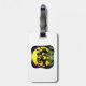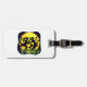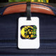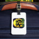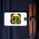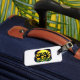 Dos gatos negros sentados con un sol amarillo gigante en el fondo. Este diseño se ve realmente efectivo en estas etiquetas de equipaje