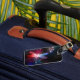 Flor, vuelo, libélula roja, con alas transparentes y detalladas sobre fondo oscuro, nocturno y luminoso con plantas tropicales y luciérnagas. Lluvia roja.