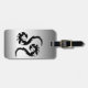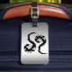 Haga que su equipaje se destaque en un carrusel del aeropuerto con diseños únicos de etiquetas! Esta elegante pero lúdica etiqueta para el equipaje muestra un motivo asiático de alegres dragones bailarines en un sencillo esquema de color negro y plata. La espalda tiene otro dragón más tu información personal. Se puede personalizar todo el texto.