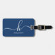 Etiqueta Para Maletas Elegant Navy Blue White Initial Script Name