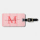 Travel in style with this elegant personalized luggage tag, designed to add a chic touch to every journey. Featuring a soft red and white striped background, one side showcases your monogram initial and name in a fancy script font, while the reverse includes space for your contact details for peace of mind while traveling.