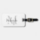 This stylish luggage tag features an elegant monogram and name in script typography. It is easily customizable.