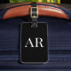Etiqueta de Equipaje Elegante Monograma Negro – Personalizada con tus Dos Iniciales. Mejora tus accesorios de viaje con esta elegante y moderna etiqueta de equipaje, que cuenta con un fondo negro elegante y un diseño personalizable. Personalízala con las iniciales de tu monograma y los detalles de la dirección en la parte posterior en tipografía blanca elegante. El diseño llamativo asegura que tus maletas sean fácilmente identificables mientras agrega un toque de elegancia a tus viajes.