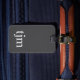 Elegante diseño de etiquetas para equipaje de personalizable completo con fondo gris oscuro, monograma blanco negrita. Añade tu código QR con tus datos de contacto. La información de contacto accesible al instante significa que tu bolsa siempre conoce su camino de vuelta :)