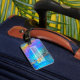 La impresionante y colorida foto de piedra labradorita en color arcoiris es el escenario perfecto para un diseño sencillo y moderno. Este es un cierre de una verdadera piedra labradorita natural con azul, púrpura, rosa, amarillo y verde. Podrás utilizarlas para cualquier tipo de negocio o persona, o también para una tienda de cristales. Use la parte delantera para un viaje bonito o una cita inspiradora, o cambie a más información si lo desea. Etiqueta moderna de diseño de color de cristal de piedra para el equipaje