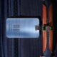 Elegante etiqueta de equipaje azul de Monograma.