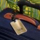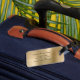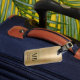 Elegante etiqueta de portaequipajes de oro de Monograma.