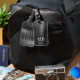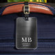 Elegante Monograma Etiqueta de equipaje metálico cepillado negro.