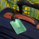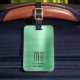 Elegante etiqueta de equipaje verde monograma.