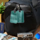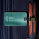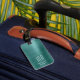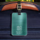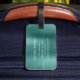 Elegante etiqueta de equipaje verde monograma.