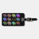 Esta sofisticada etiqueta de viaje cuenta con desfiles de elefantes ornamentales de colores hermosos que varían en vitalidad, matices y brillo en un fondo negro.