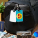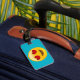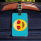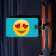 Diseño divertido de la emoji. Cara amarilla con los ojos rojos del corazón. Añada su propio texto. Cambie el color de fondo su preferido.